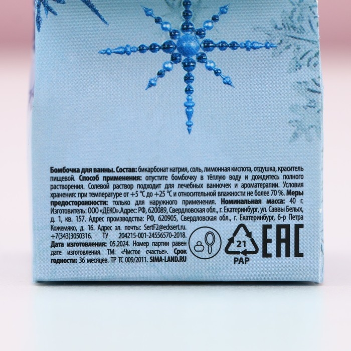 Бомбочка для ванны «Уютного Нового Года!», 40 г, аромат голубики, ЧИСТОЕ СЧАСТЬЕ