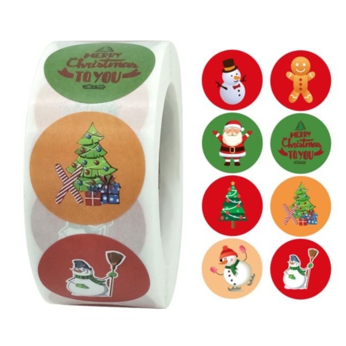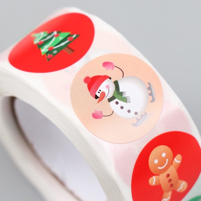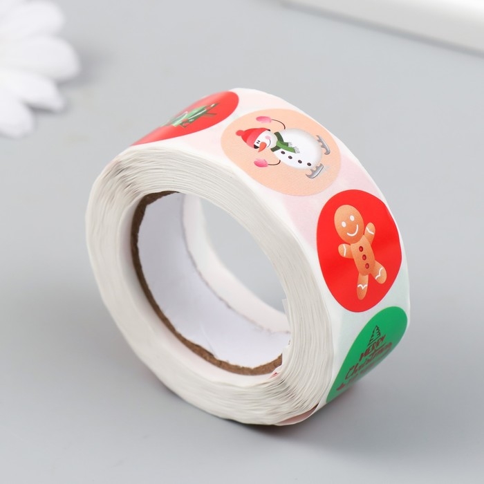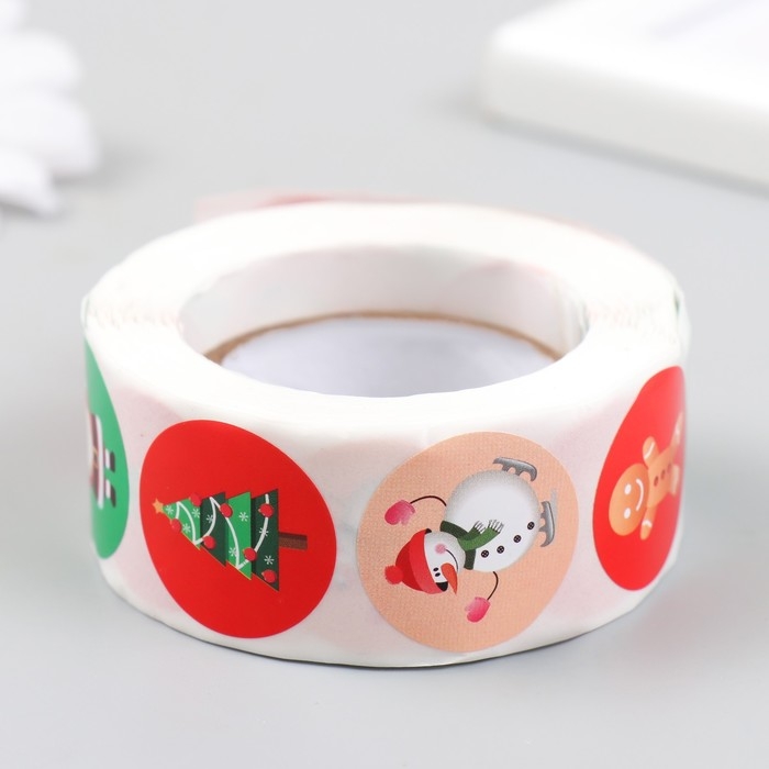 Наклейка бумага "Рождество" d=2,5 см 500 шт в рулоне 3х6,5х6,5 см