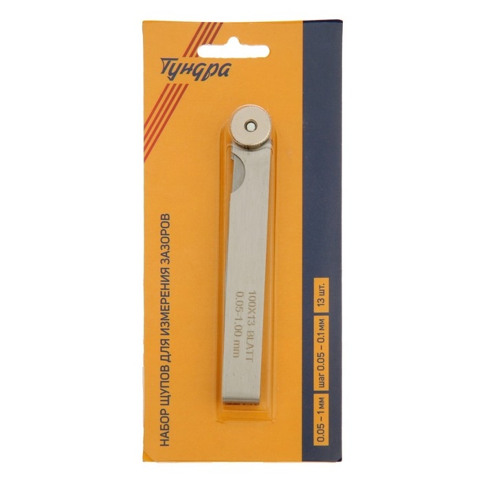 Набор щупов для измерения зазоров ТУНДРА, 0.05 - 1 мм, шаг 0.05 - 0.1 мм, 13 шт.