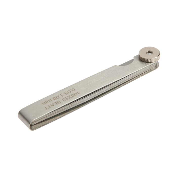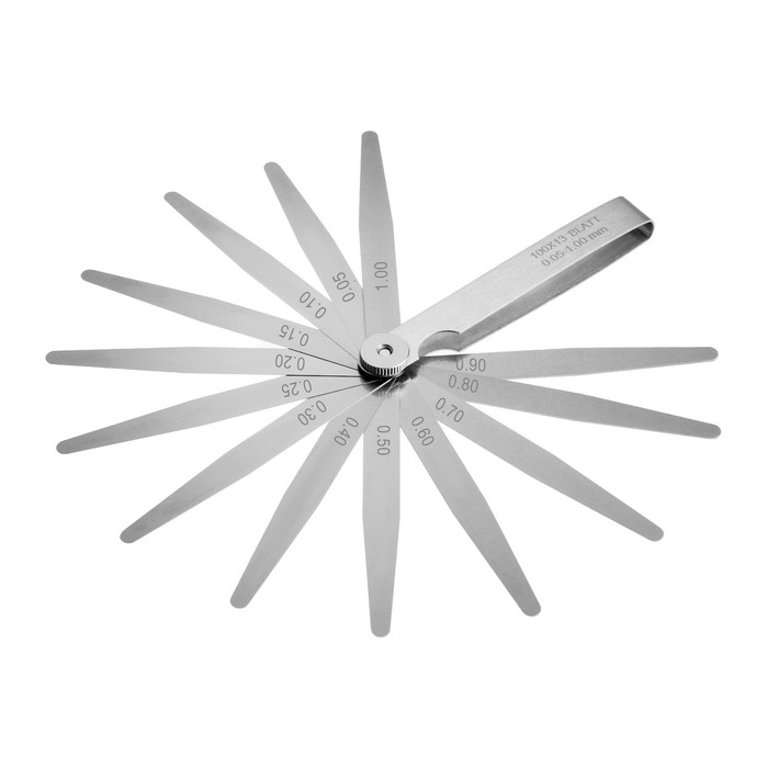 Щупы из набора оснащены шкалой с шагом измерений от 0.05 до 0.1 мм. Это позволяет быстро и легко находить соответствующий размер зазора. В комплекте есть 13 щупов разной толщины: 0.05, 0.1, 0.15, 0.2, 0.25, 0.3, 0.4, 0.5, 0.6, 0.7, 0.8, 0.9 и 1.0 мм.
