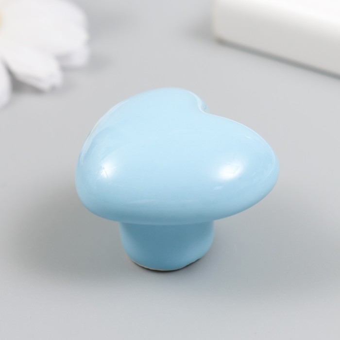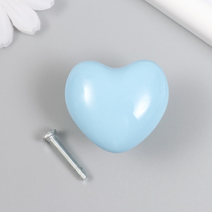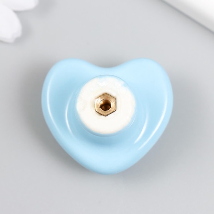 Ручка для шкатулки керамика, металл "Сердечко" голубая 3,8х3,8х3 см