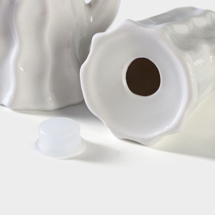 Набор фарфоровый для специй на бамбуковой подставке BellaTenero «Кактусы», 2 предмета: солонка 75 мл, перечница 75 мл, цвет белый