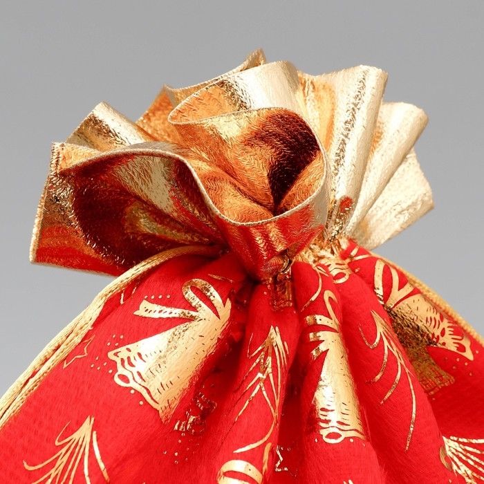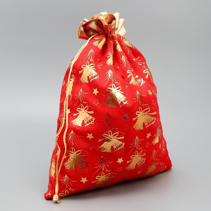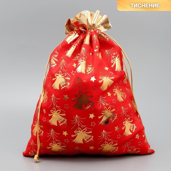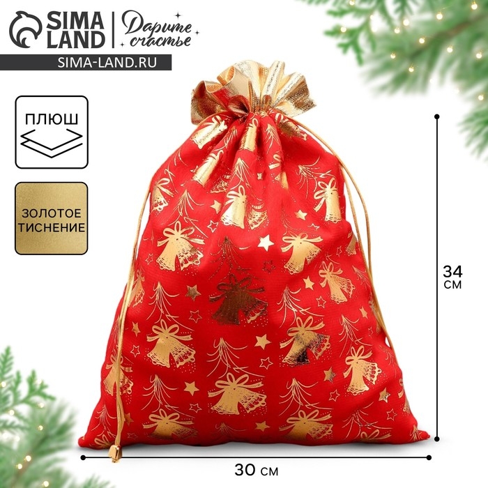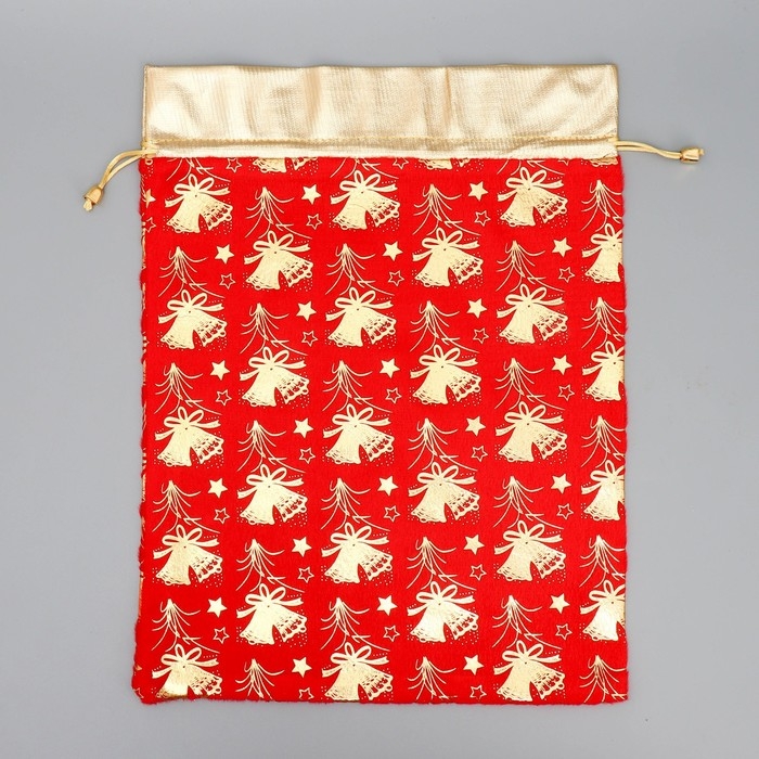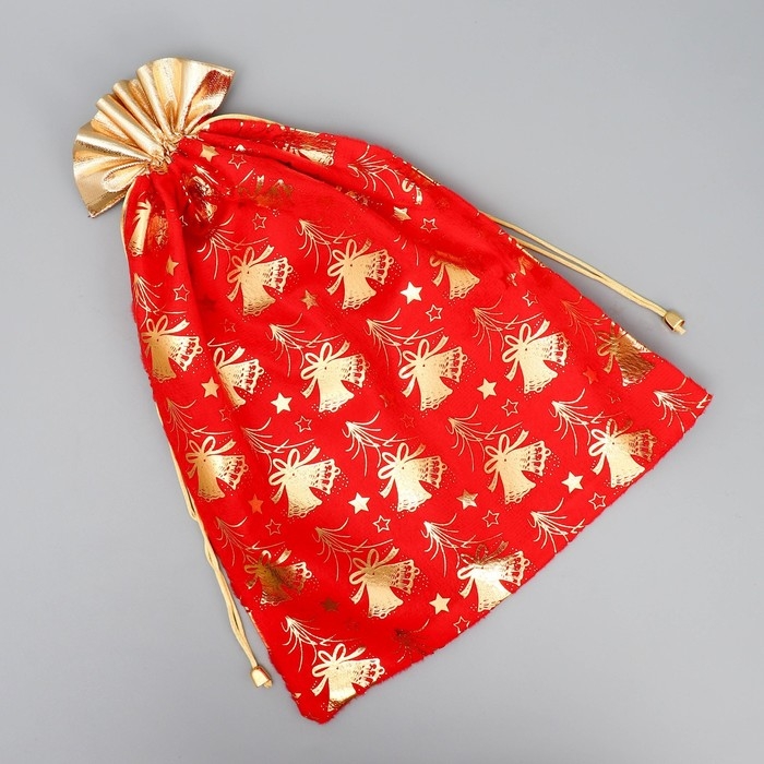 Мешочек подарочный плюш «Новогодние колокола», колокольчик, тиснение, 30 х 40 см +/- 1.5 см, Новый год