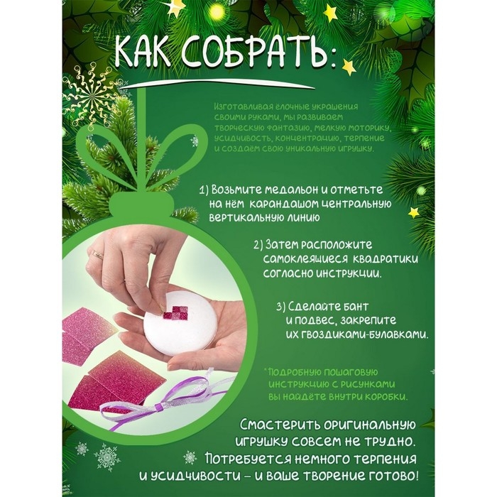 Набор для творчества «Ёлочная игрушка своими руками» — это отличный подарок для детей и взрослых, которые любят создавать что-то новое и оригинальное.