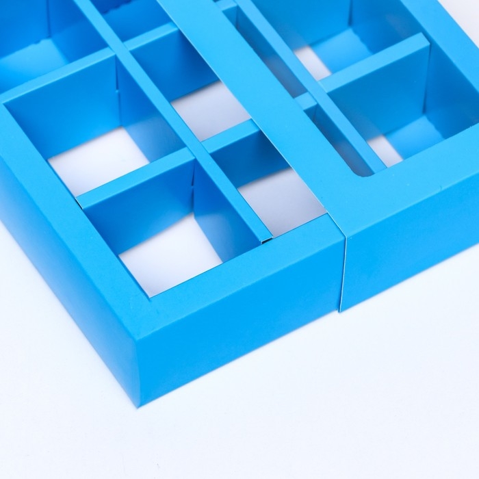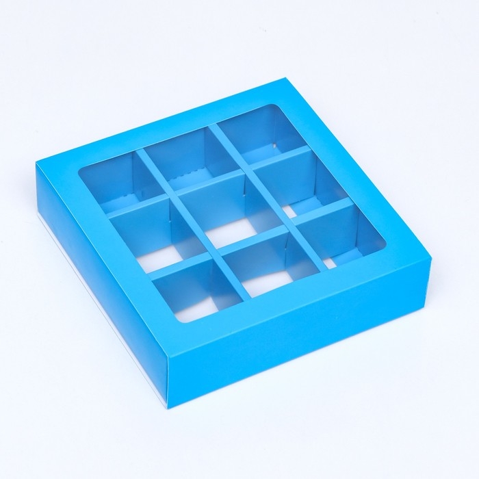 Коробка для 9 конфет, голубой, 13,7 х 13,7 х 3,5 см. Кондитерская упаковка