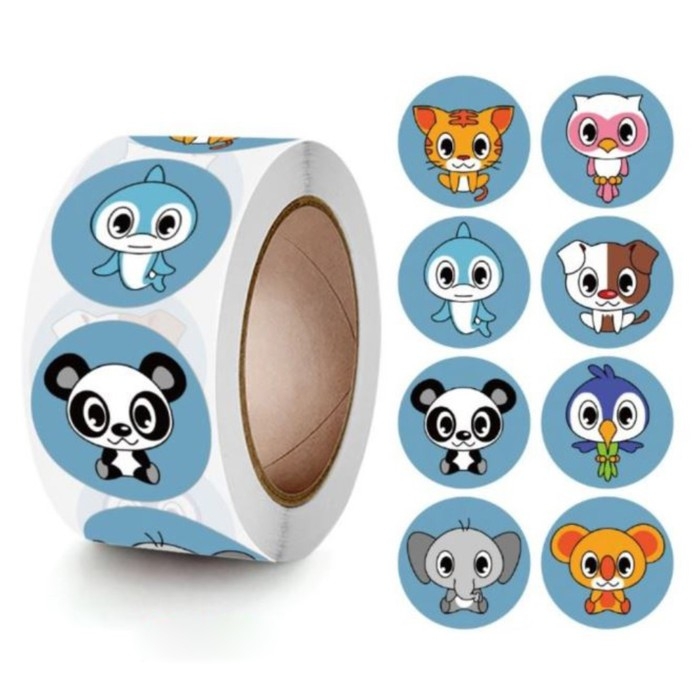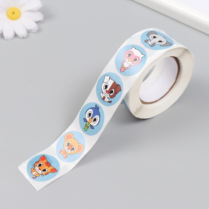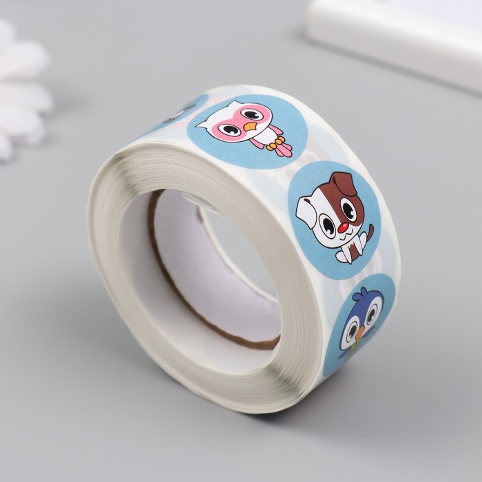 Наклейка бумага "Тропическая фауна" d=2,5 см 500 шт в рулоне 3х6,5х6,5 см