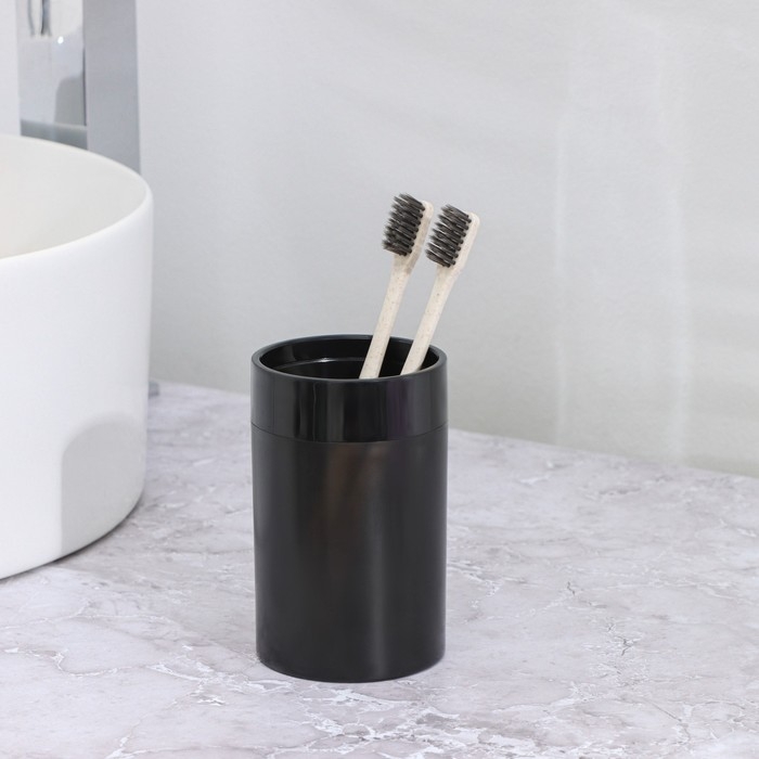 Стакан для зубных щёток, 7×7×11,5 см, цвет чёрный
