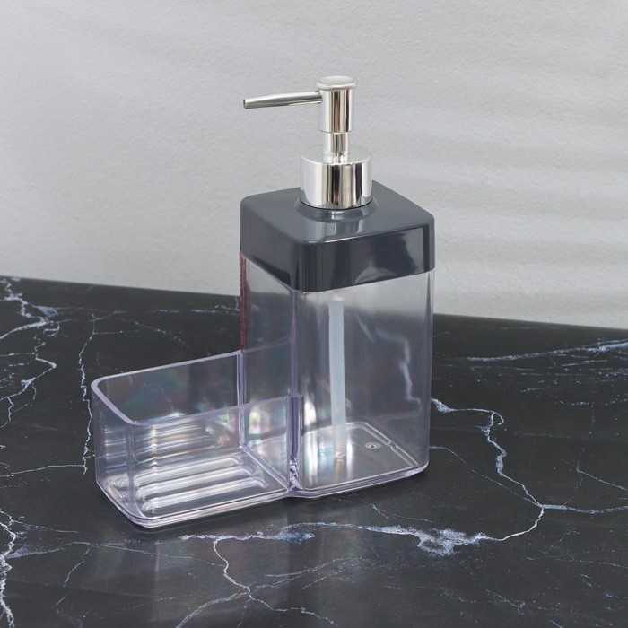Дозатор для мыла с подставкой, 15,5×7,3×19 см, цвет прозрачный