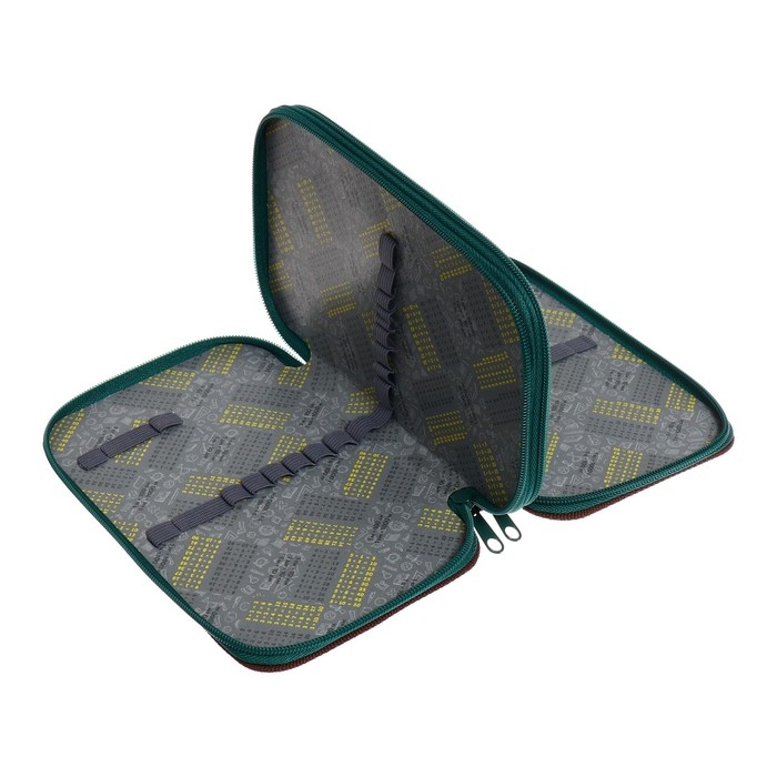 Пенал 3 секции, вкладка внутри, 140 х 210 х 40 мм, тканевый, Calligrata TOP Block "Волк графика"