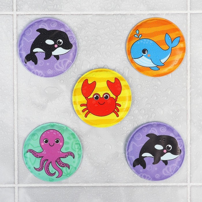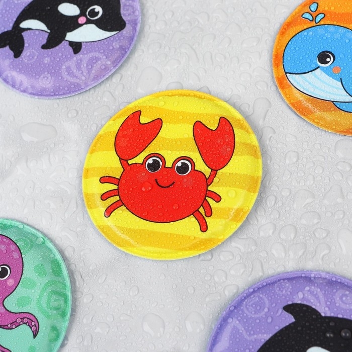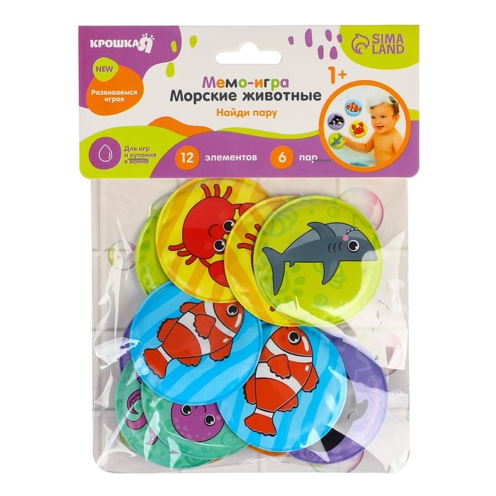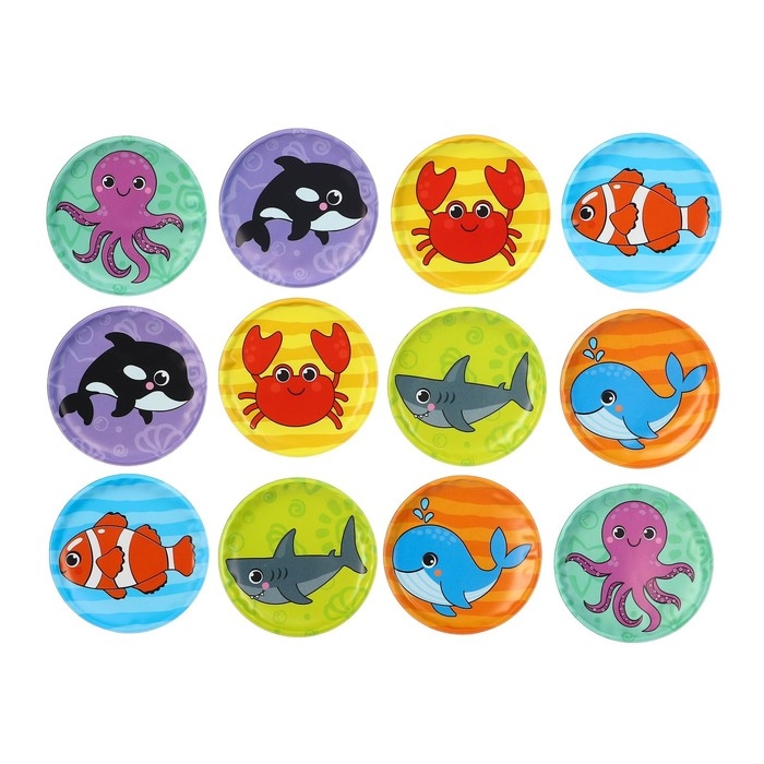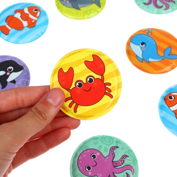 Мемо-игра: развивающие наклейки - присоски многоразовые для игры в ванной «Морские животные», найди пару, 6 пар,12 стикеров EVA, Крошка Я