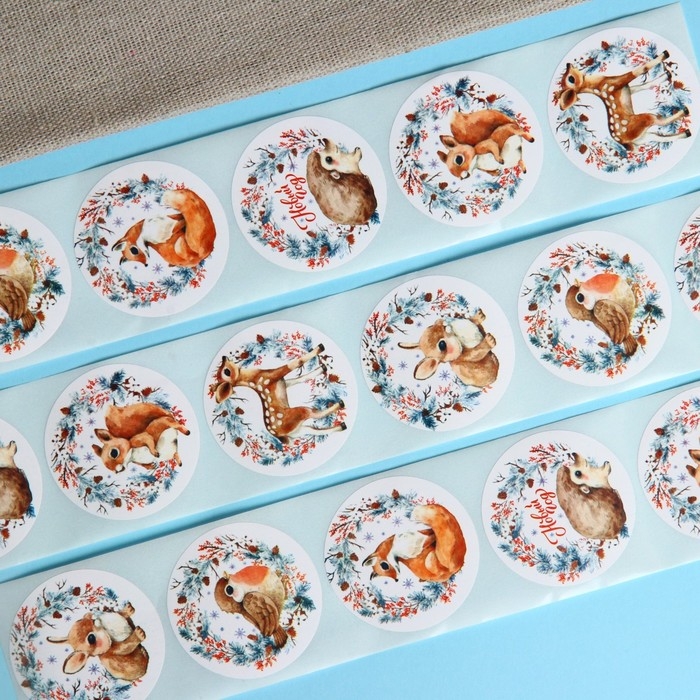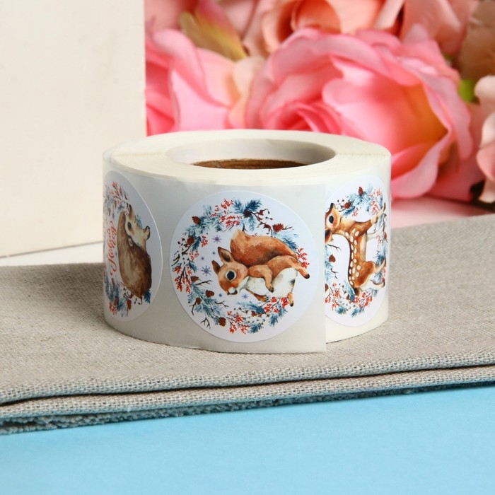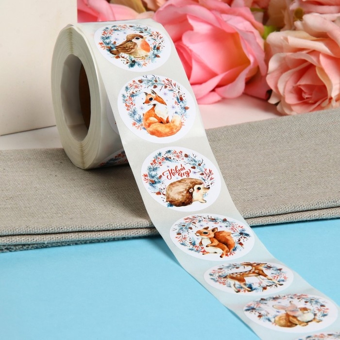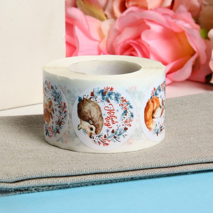 Новый год. Наклейки в рулоне "Зверята", 500 шт, 3,8 х 3,8 см