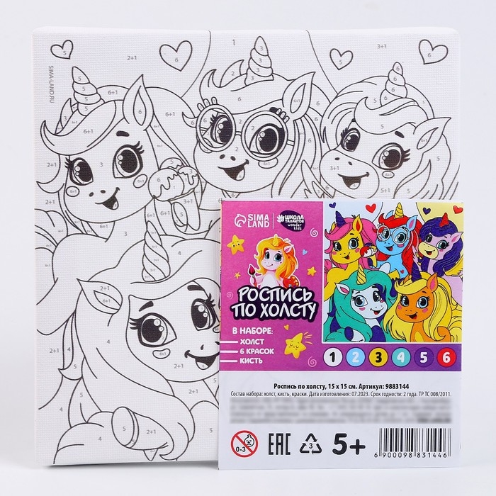 Картина по номерам для детей «Единорожки-друзья», 15 х 15 см