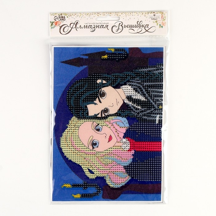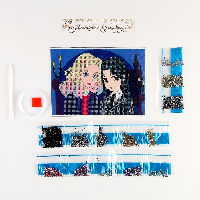 Часть изображения предстоит заполнить стразами, другая часть напечатана на холсте-основе. Поэтому набор подойдёт для тех, кто впервые пробует свои силы в этой технике или любит быстро добиваться результата.