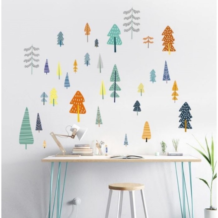 Наклейка пластик интерьерная цветная "Разноцветный лес" 25х70 см набор 2 листа