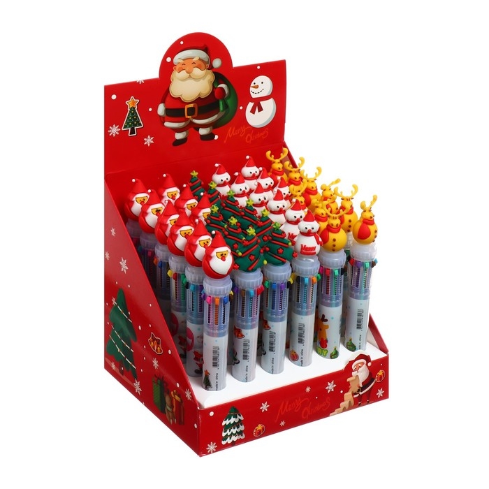 Новый год. Ручка шариковая автоматическая Calligrata, 10 цветов, МИКС