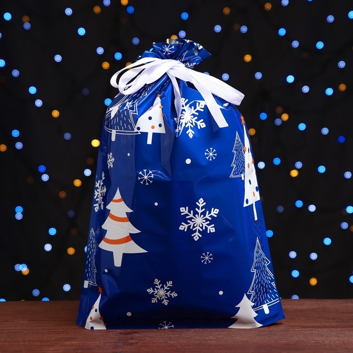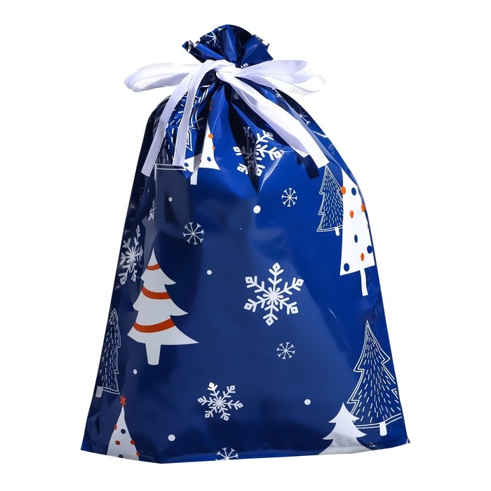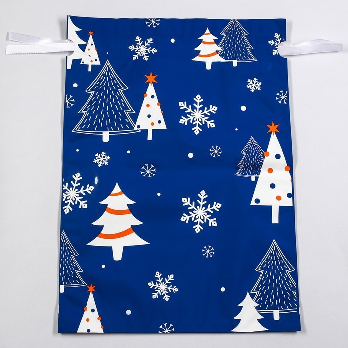 Новый год. Пакет подарочный с завязками, "Зимний лес", 29х43 см.