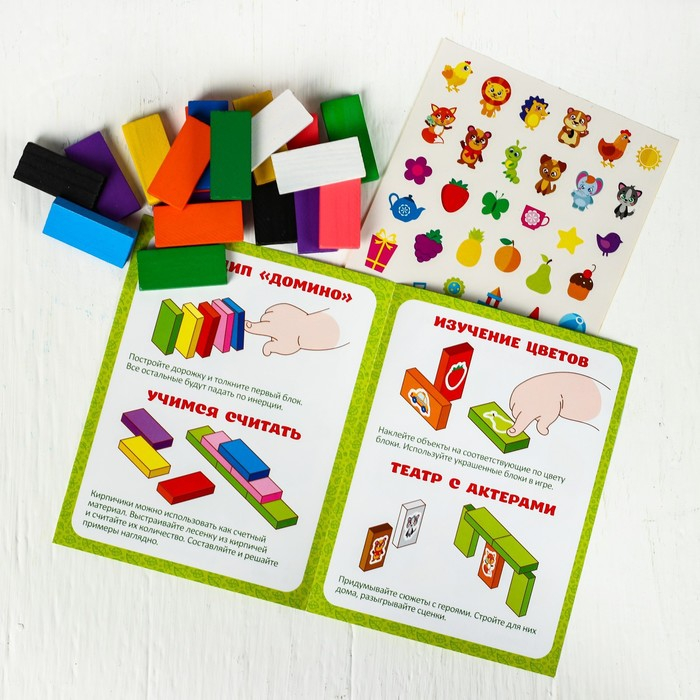С конструктором можно изучать цвета, учиться считать, строить замки. Наклейки в наборе позволят вам создать настоящий театр с актёрами! Придумывайте сюжеты, разгырвайте истории вместе!