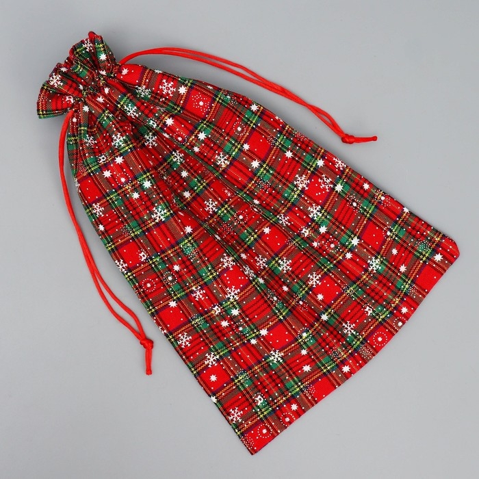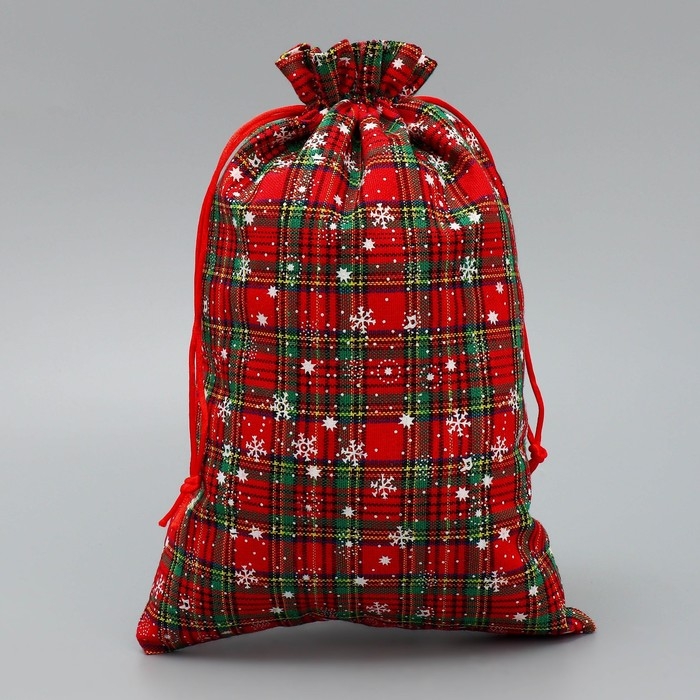 Мешочек подарочный холща «Новогодняя клетка», снежинки, 20 х 30 см +/- 1.5 см, Новый год