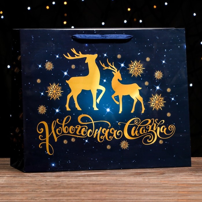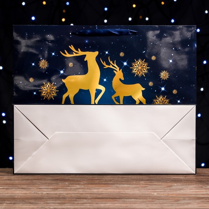 Новый год. Пакет ламинированный горизонтальный "Олени",49 х 40 х 19 см.