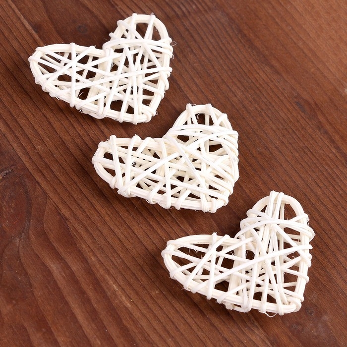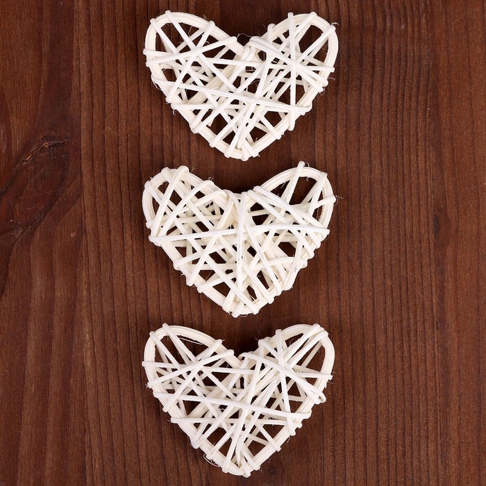 Декор для творчества из лозы «Сердце» набор 3 шт., размер 1 шт. — 6,5 × 6 см, цвет натуральный