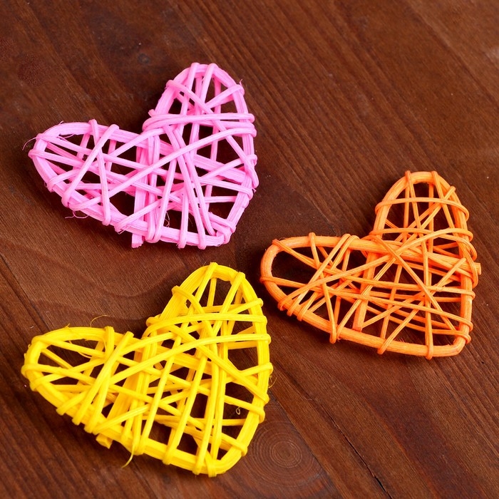 Декор для творчества из лозы «Сердце» набор 3 шт., размер 1 шт. — 6,5 × 6 см, цвет МИКС