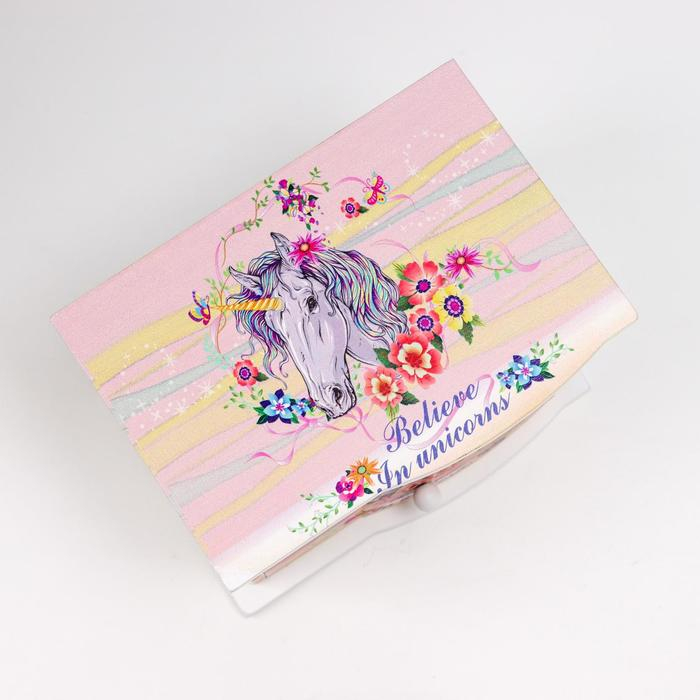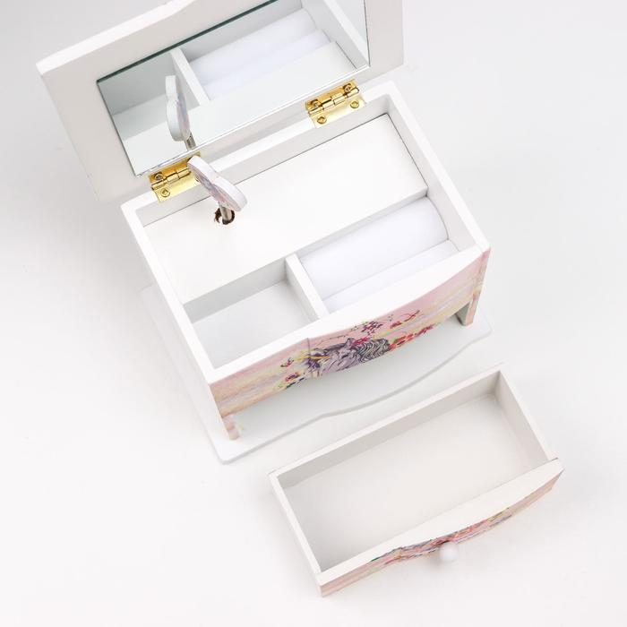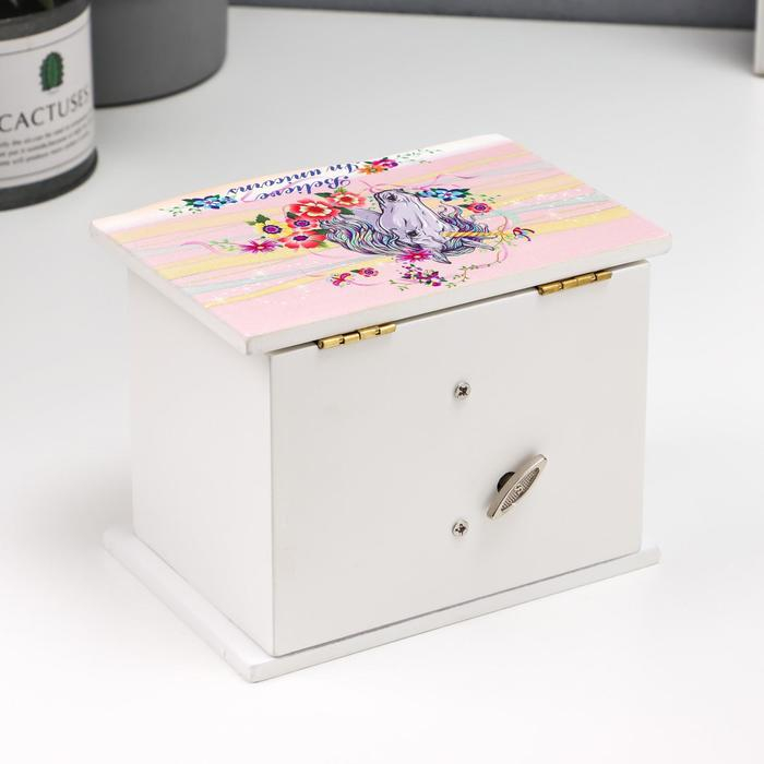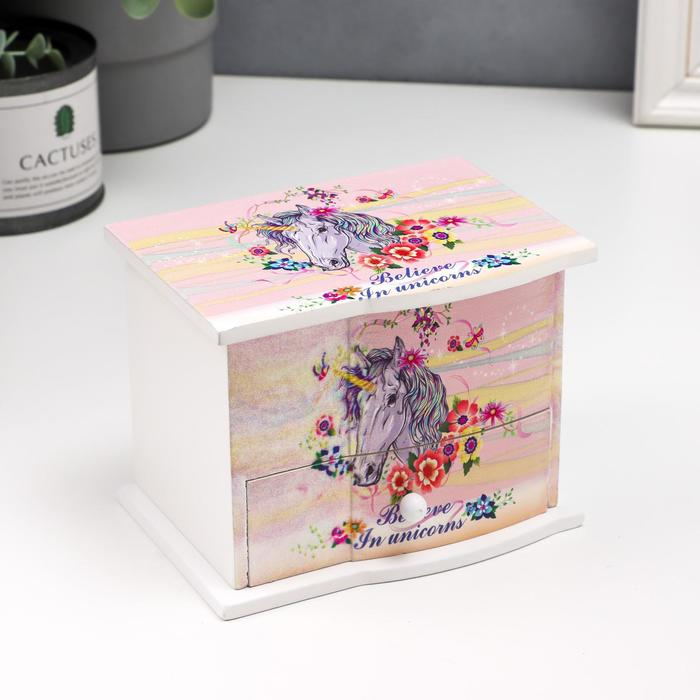 Шкатулка дерево комод 1 ящик музыкальная "Единорог в цветах" 11х14,7х10,6 см