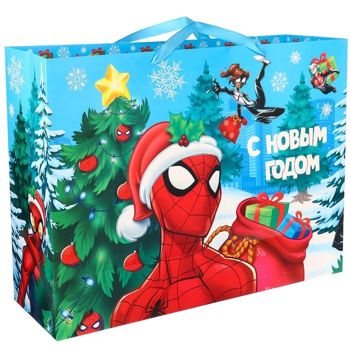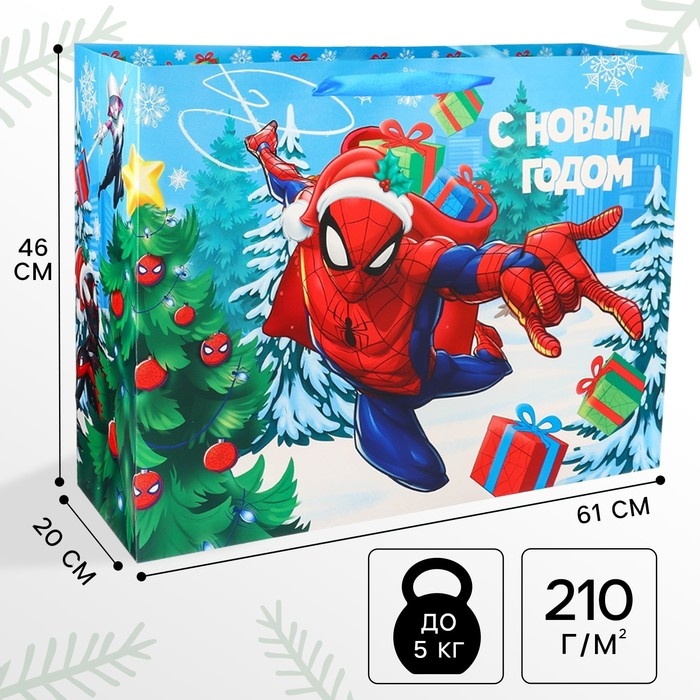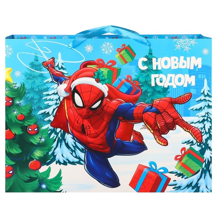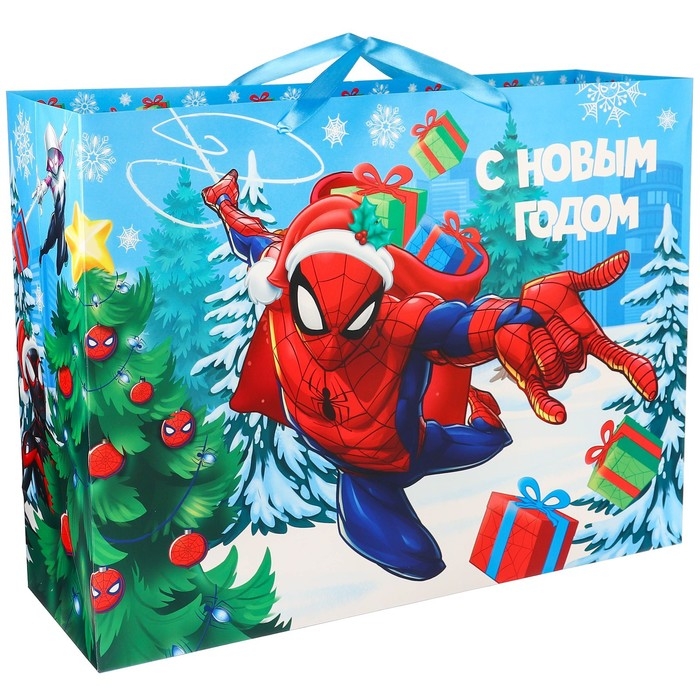 Новый год. Пакет подарочный, 61х46х20 см, упаковка, Человек-паук