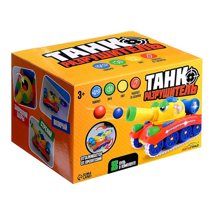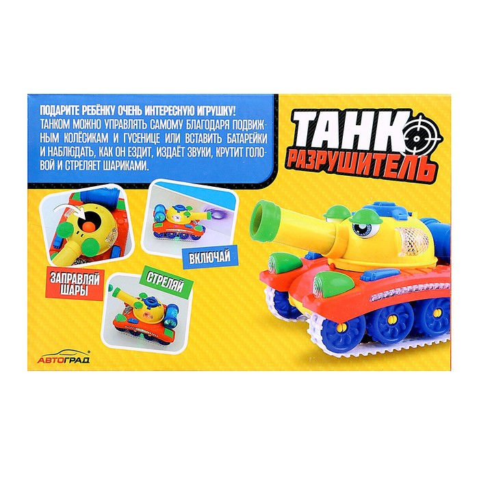 Танк «Разрушитель», стреляет, световые и звуковые эффекты, работает от батареек