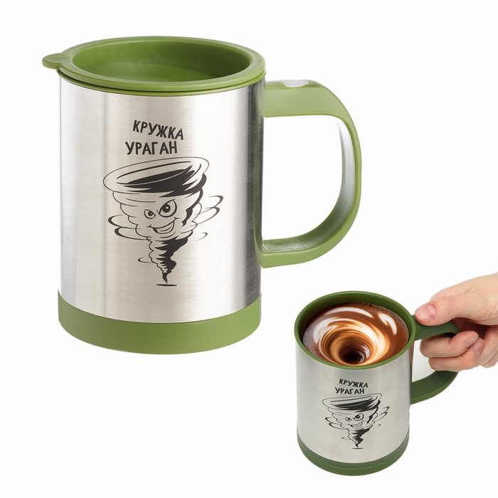 Термокружка, 350 мл, Экземпляр "Кружка ураган", саморазмешивающая, 11.5 х 8.9 см