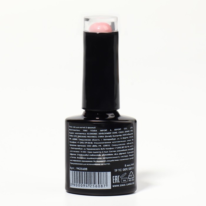 Гель лак для ногтей, с блёстками, 3-х фазный, 8 мл, LED/UV, розовый
