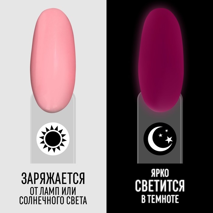 Гель лак для ногтей «GLOW IN THE DARK», 3-х фазный, 8 мл, LED/UV, люминесцентный, цвет клубничный йогурт (47)
