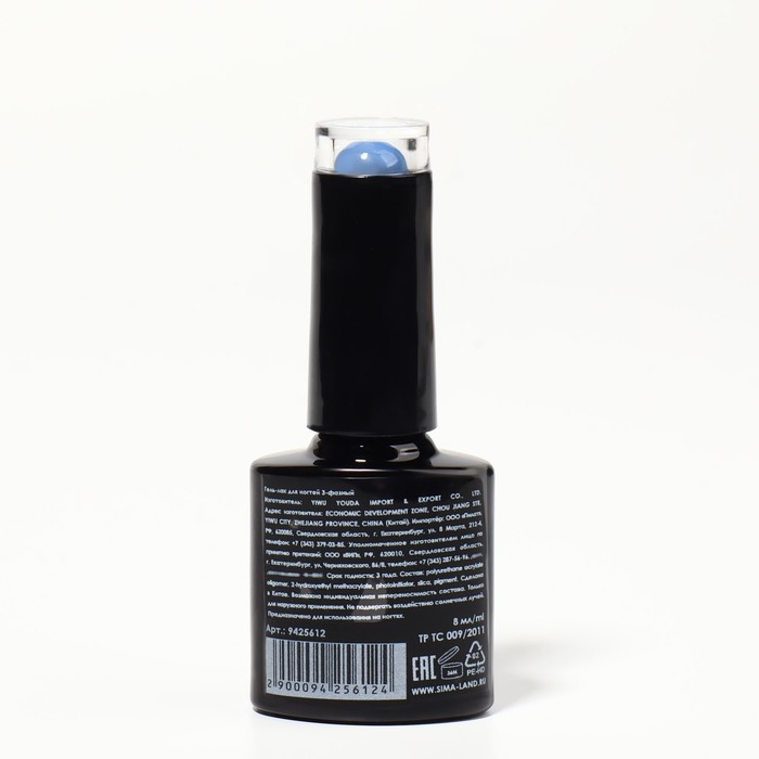 Гель лак для ногтей «GLOW IN THE DARK», 3-х фазный, 8 мл, LED/UV, люминесцентный, цвет синий (18)