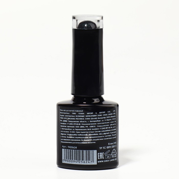 Гель лак для ногтей, с блёстками, 3-х фазный, 8 мл, LED/UV, розовый