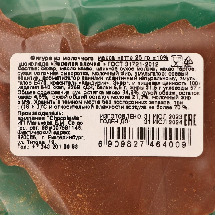 Новый год. Фигура из молочного шоколада "Веселая елочка" , 25 г ± 5 %