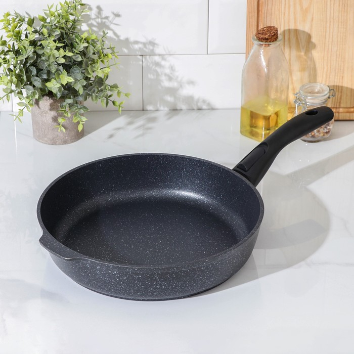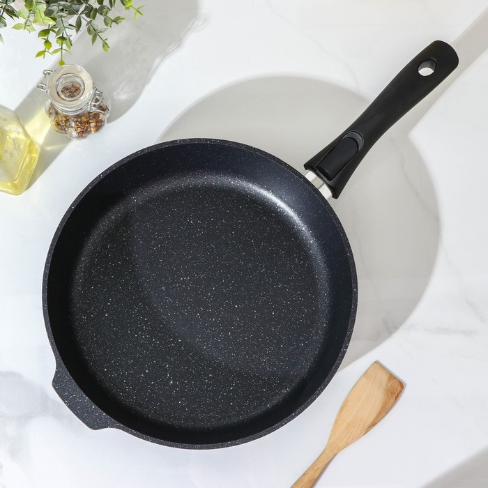 Сковорода, d=28 см, съёмная ручка, антипригарное покрытие, тёмный мрамор