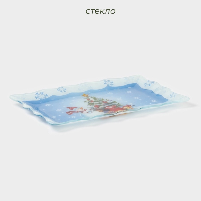 Блюдо стеклянное прямоугольное Доляна «Зимняя сказка», 29,5×19,5 см