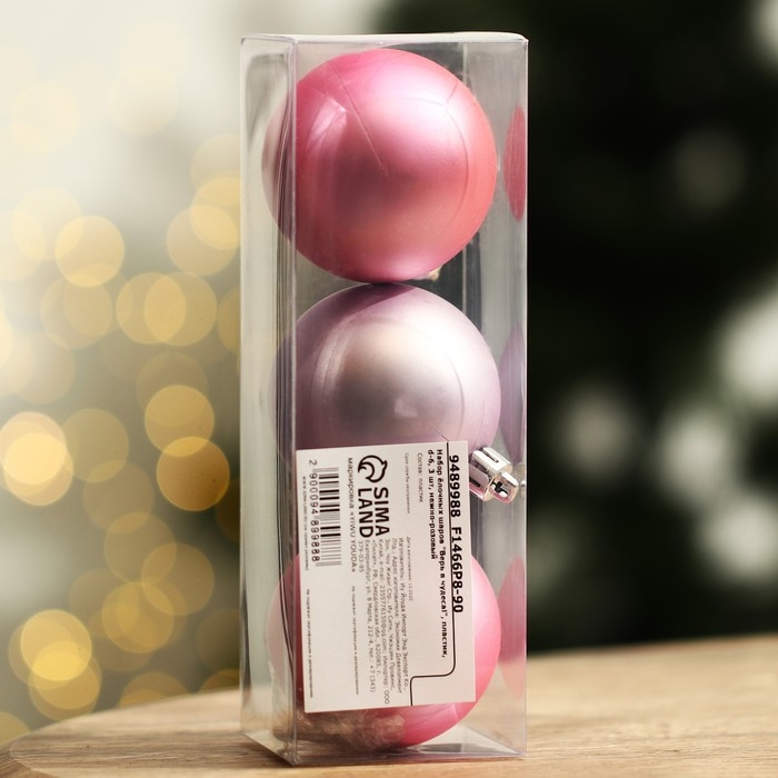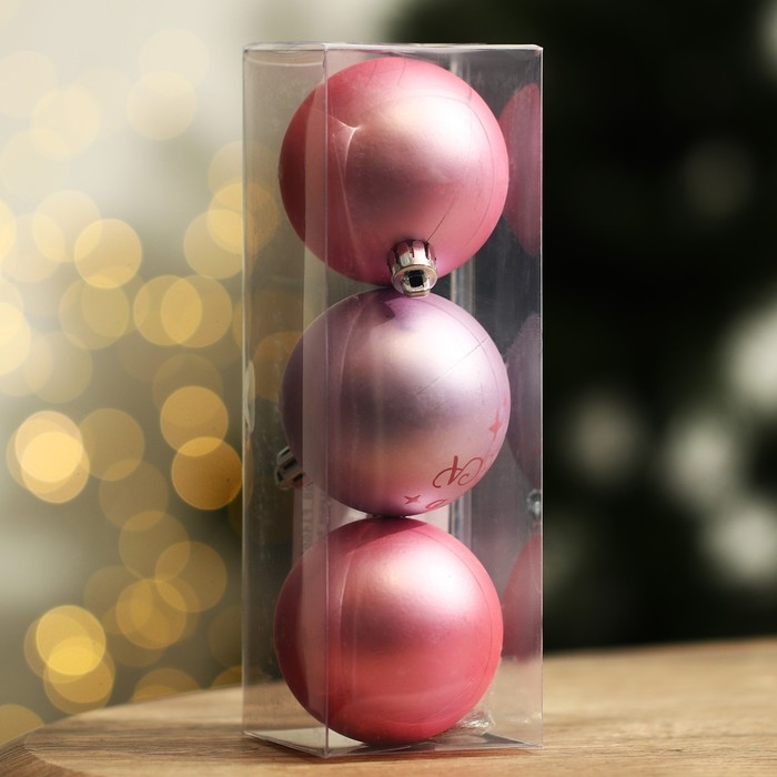 Шары ёлочные новогодние «Верь в чудеса!», на Новый год, пластик, d=6, 3 шт., цвет нежно-розовый