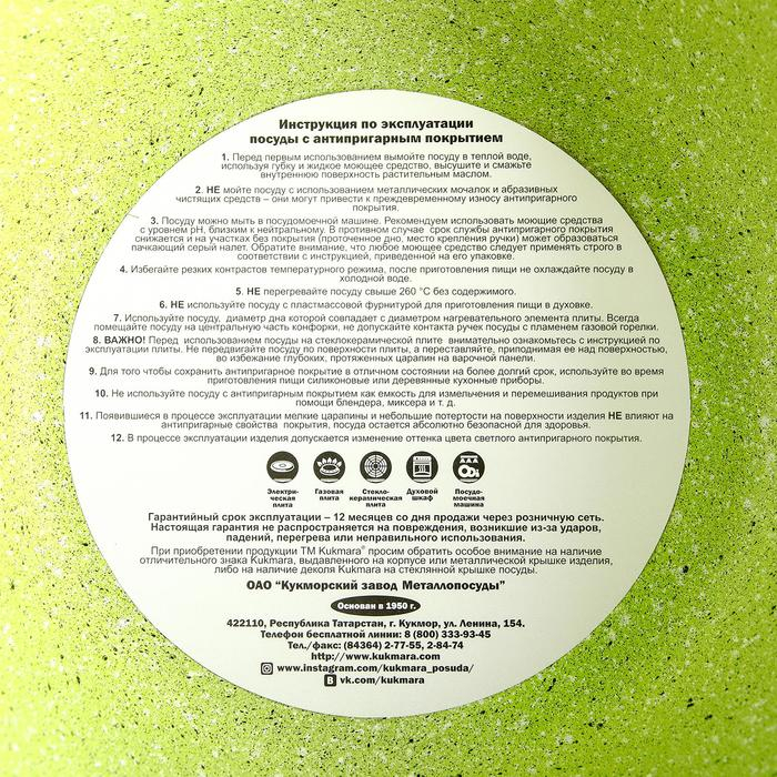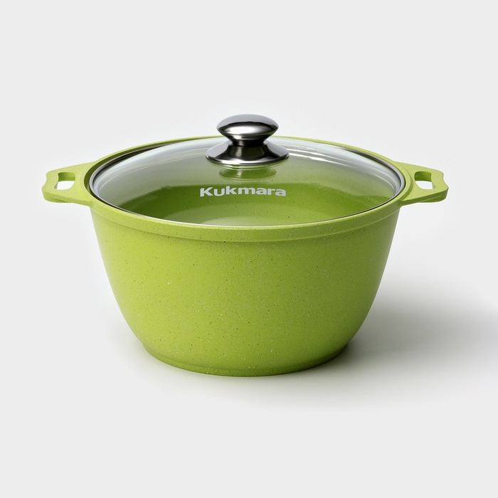 Посуда линии Trendy style разработана в соответствии с последними модными тенденциям. Кастрюля Kukmara сделана из литого алюминия, с внутренней и внешней стороны — антипригарное покрытие увеличенной прочности, изготовлено на водной основе по немецким технологиям.
