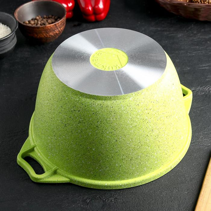 Кастрюля Trendy style, 4 л, d=24 см, h=17,5 см, стеклянная крышка, антипригарное покрытие, цвет зелёный