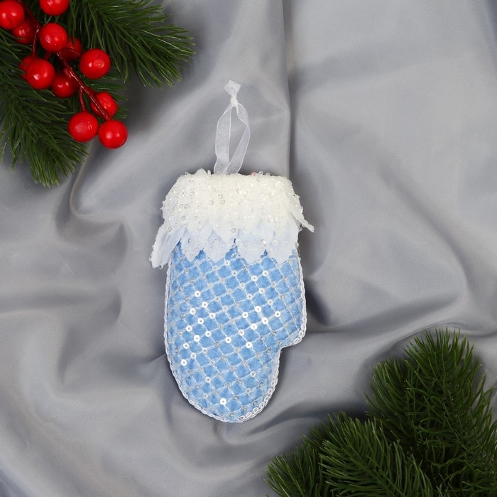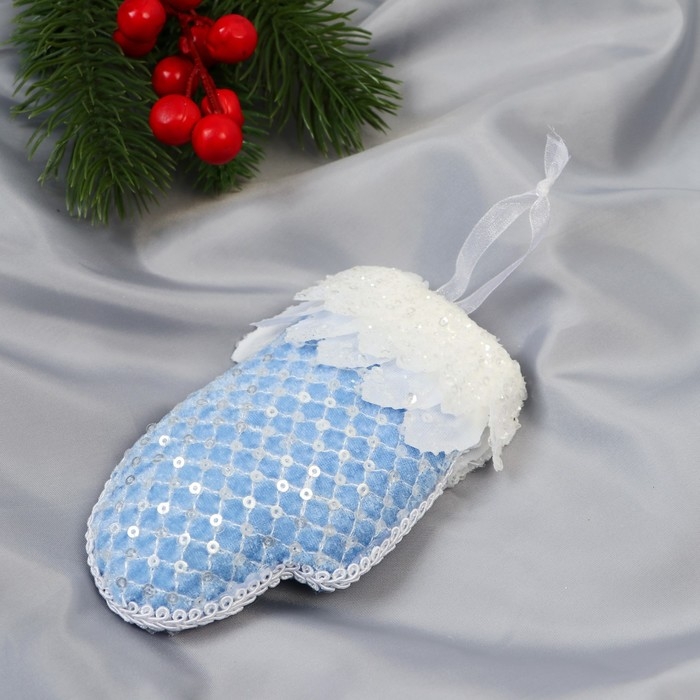 Украшение ёлочное "Рукавица элит" 7х12 см, бело-голубой