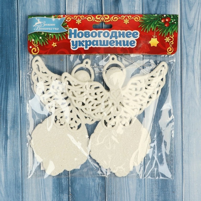 Украшение ёлочное "Ангелочек люкс" (набор 2 шт) 9х11 см, белый