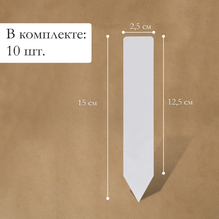 Бирки садовые для маркировки, 15 см, набор 10 шт., пластик, белые, Greengo