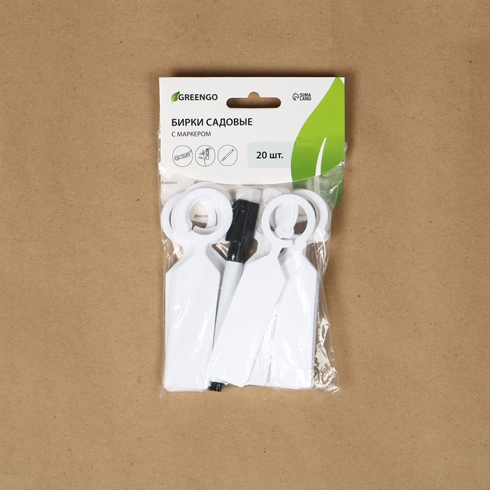 Бирки садовые для маркировки, 10,5 см, набор 20 шт., маркер, пластик, белые, Greengo