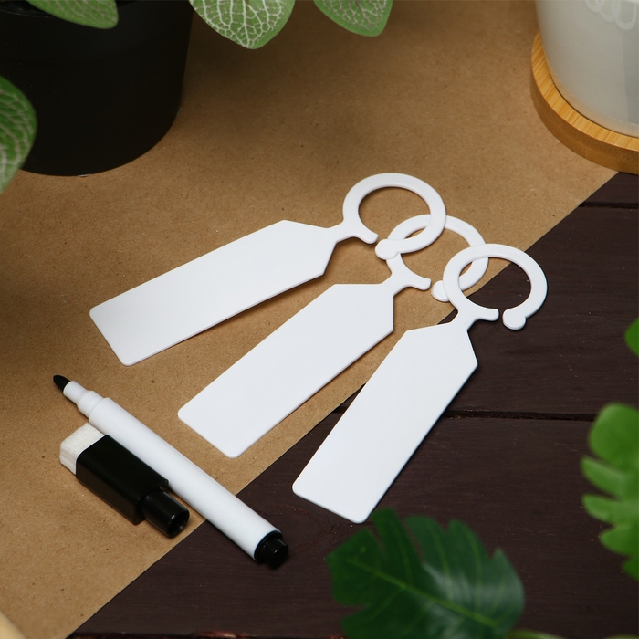 Таблички садовые для маркировки, 15 см, набор 10 шт + маркер, пластик, белые, Greengo