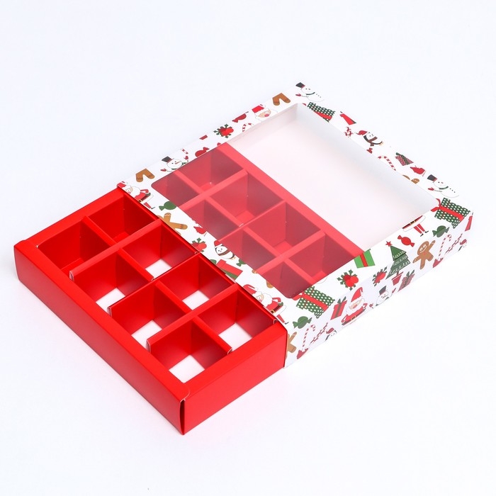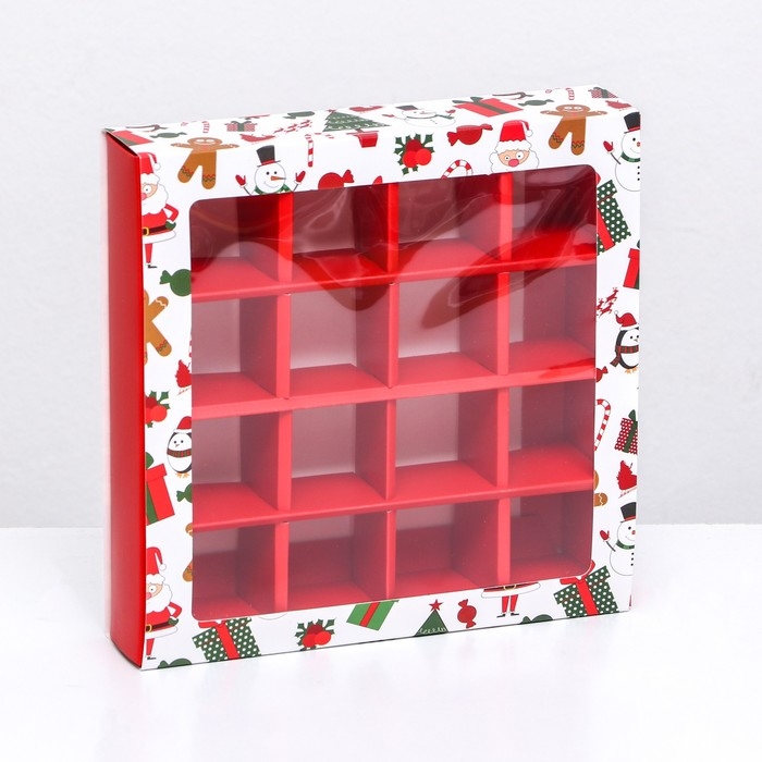 Новый год. Коробка под 16 конфет, 17,7х17,7х3,8 см, кондитерская упаковка