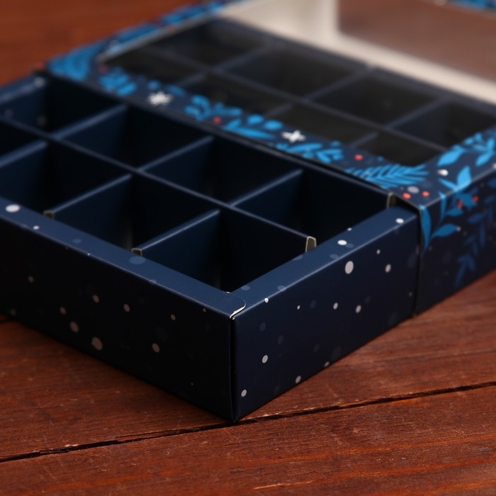 Новый год. Коробка под 16 конфет, 17,7х17,7х3,8 см, кондитерская упаковка