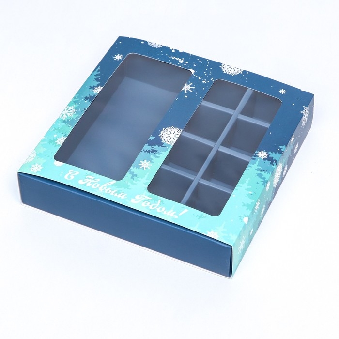 Новый год. Коробка под 8 конфет и шоколадки, 17,7х17,7х3,8 см, кондитерская упаковка