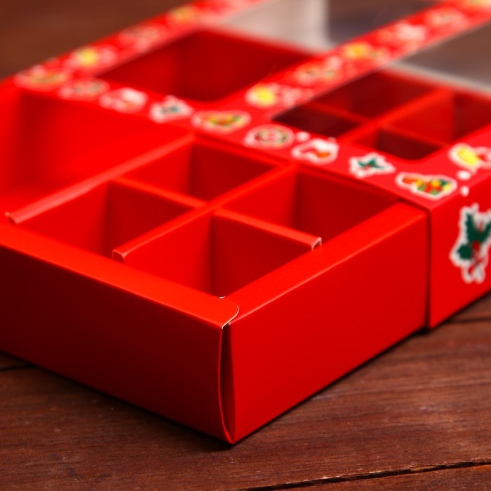 Новый год. Коробка под 8 конфет и шоколадки, 17,7х17,7х3,8 см, кондитерская упаковка