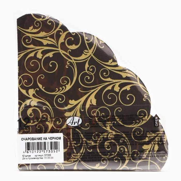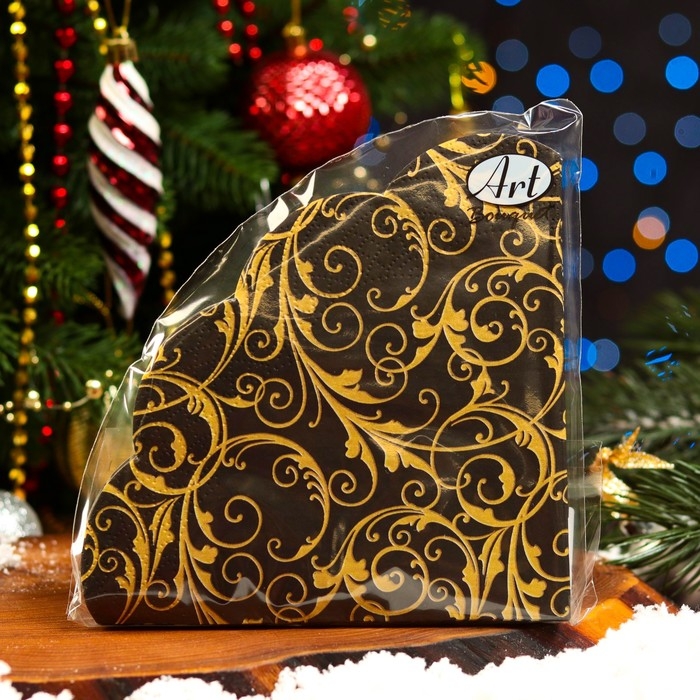 Новогодние салфетки бумажные Art Bouquet Rondo «Очарование на черном», 3 слоя, d 32 см., 12 шт.