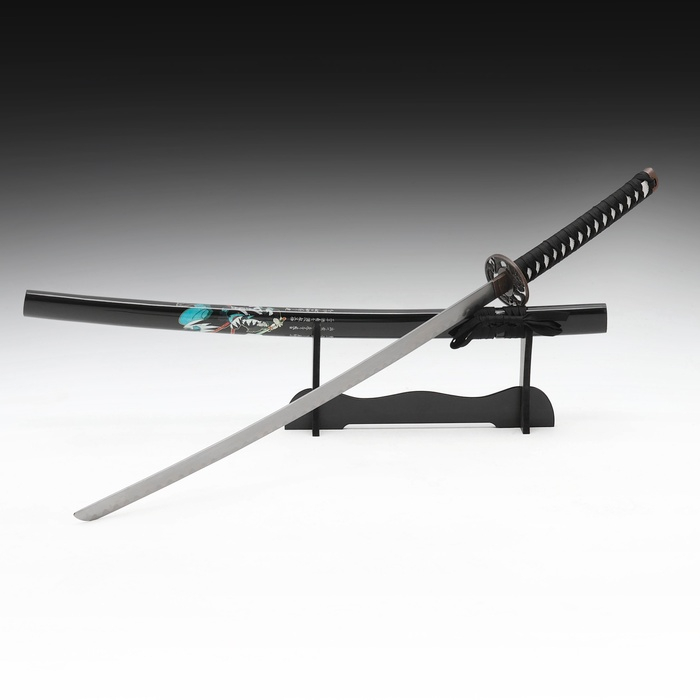 Сувенирное оружие "Катана Изаму" 100 см, клинок 68 см, чёрная, на подставке
